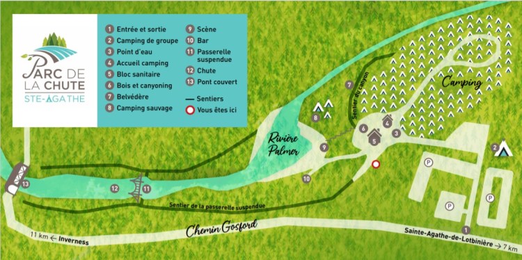 Le Parc de la Chute Sainte-Agathe est un lieu de prédilection pour les amateurs de nature, de détente, d’aventure et de culture. Un détour par les sentiers de randonnée, la passerelle suspendue ou la plage vous fera assurément tomber en amour avec les lieux. Une aire de pique nique et module de jeu sont aussi disponible pour les visiteurs. Et c’est tant mieux, car vous pourrez prolonger votre visite en campant au Parc de la Chute!
