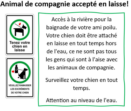 Pour les tous petits il y a un module de jeux dans l’aire de pique-nique. ‘Poussette à grosse roues’ suggéré pour les sentiers et la descente pour la rivière.