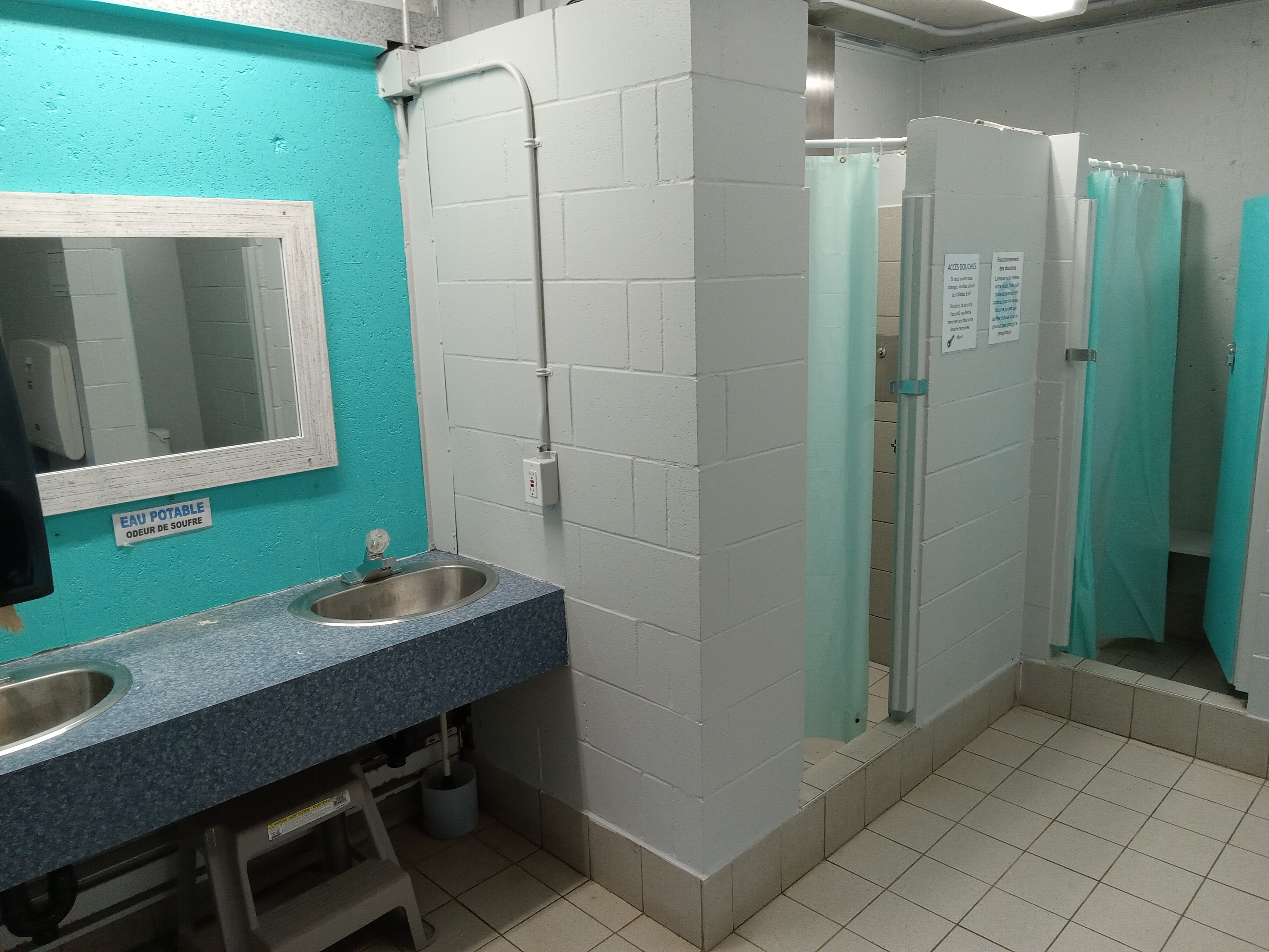 - Point d’eau/ station vaisselle (veuillez prendre note que l’eau est potable mais sent le soufre)* Amenez votre consommation personnelle d’eau potable.