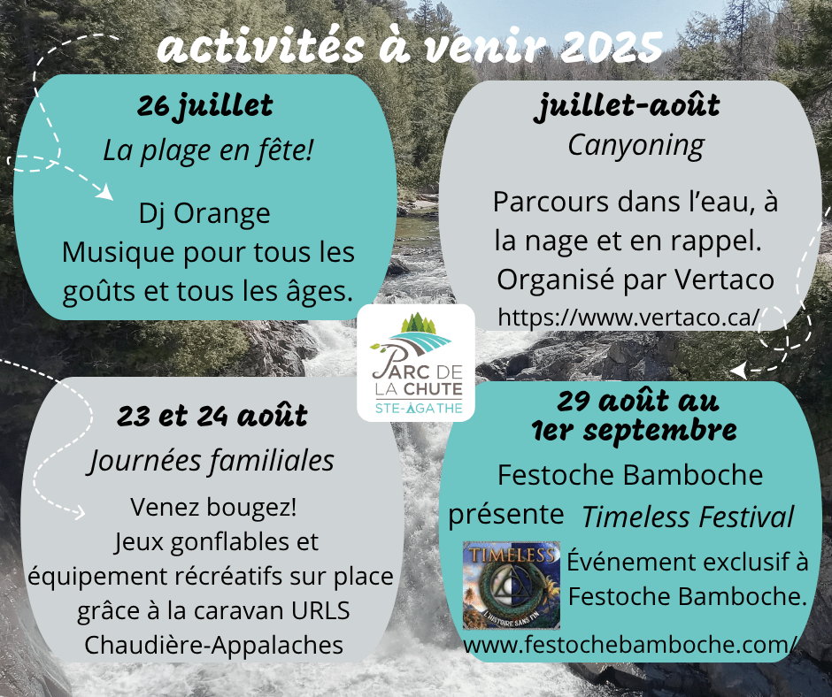 Veuillez prendre note que le site est fermé est non accessible. Réouverture mai 2026. Pour toutes questions, écrivez à l’adresse suivante : chutesteagathe@gmail.com